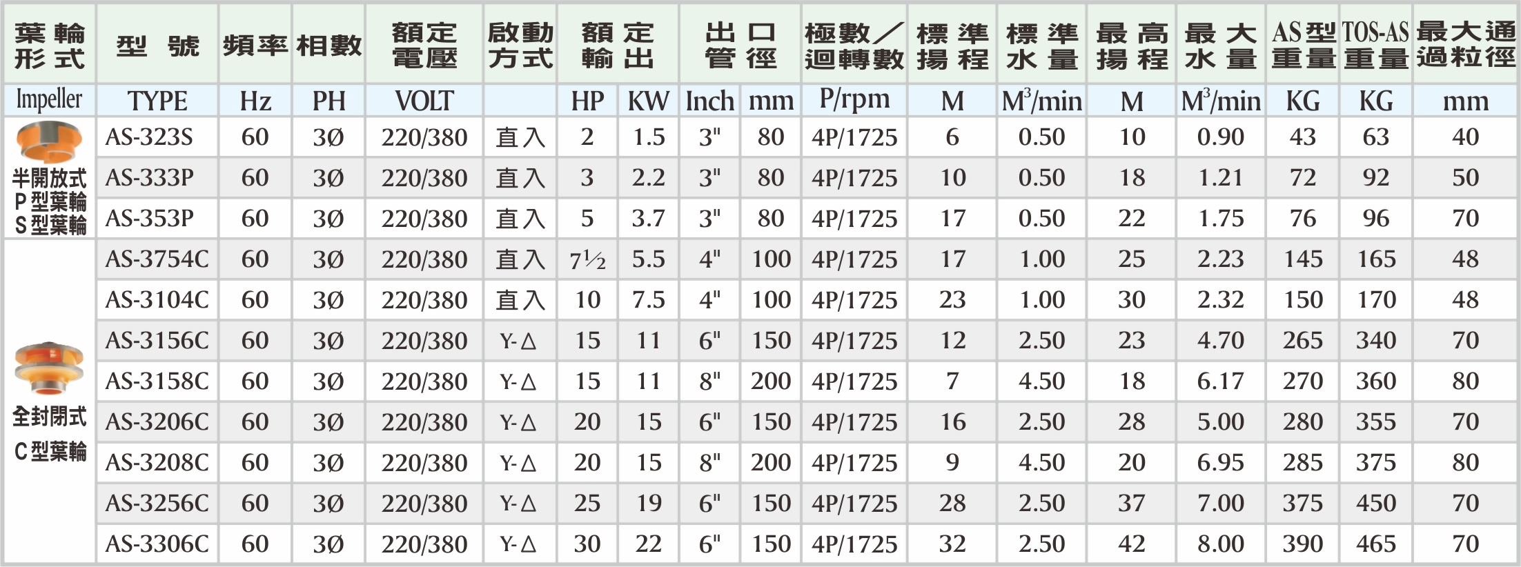 AS-3156C 設備用污物廢水型泵浦(4P) 220V