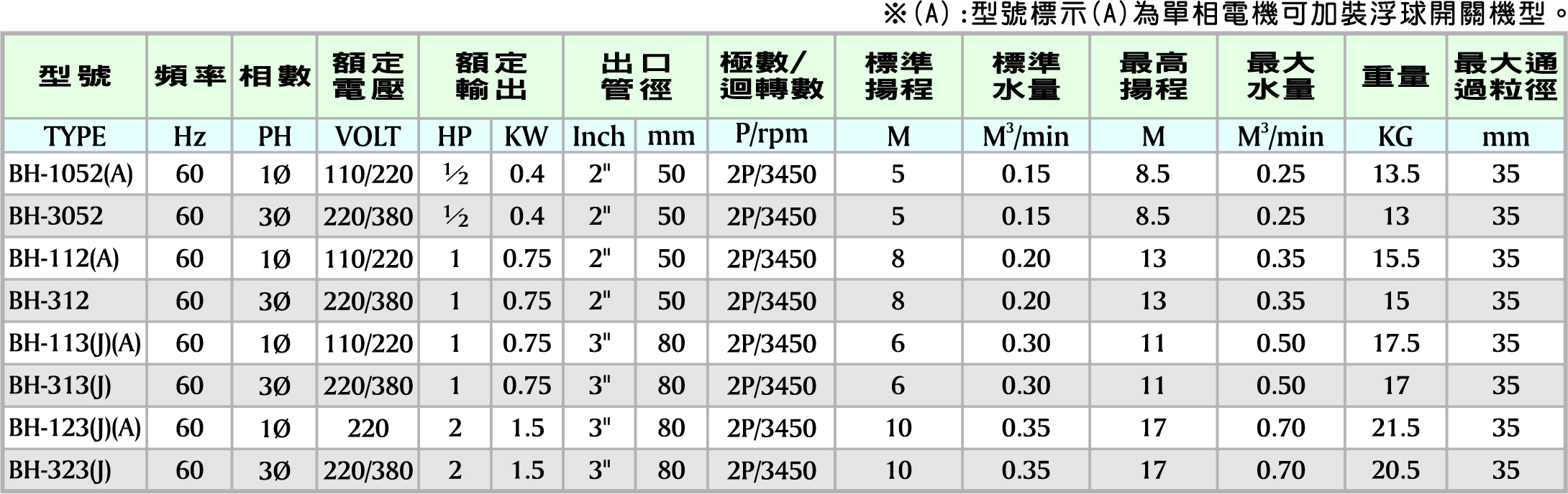 BH-3052 系列泛用型污物廢水泵浦 220V