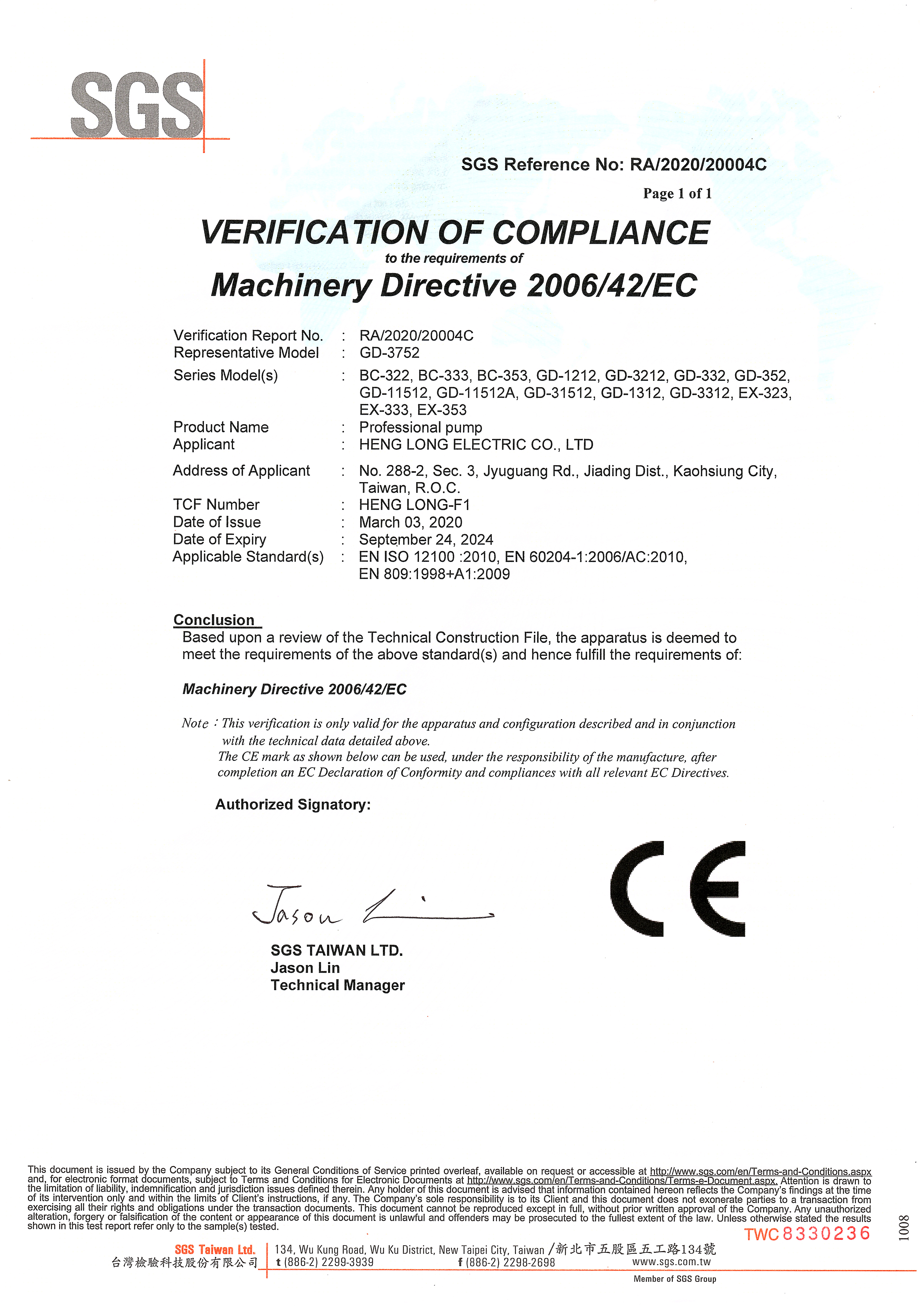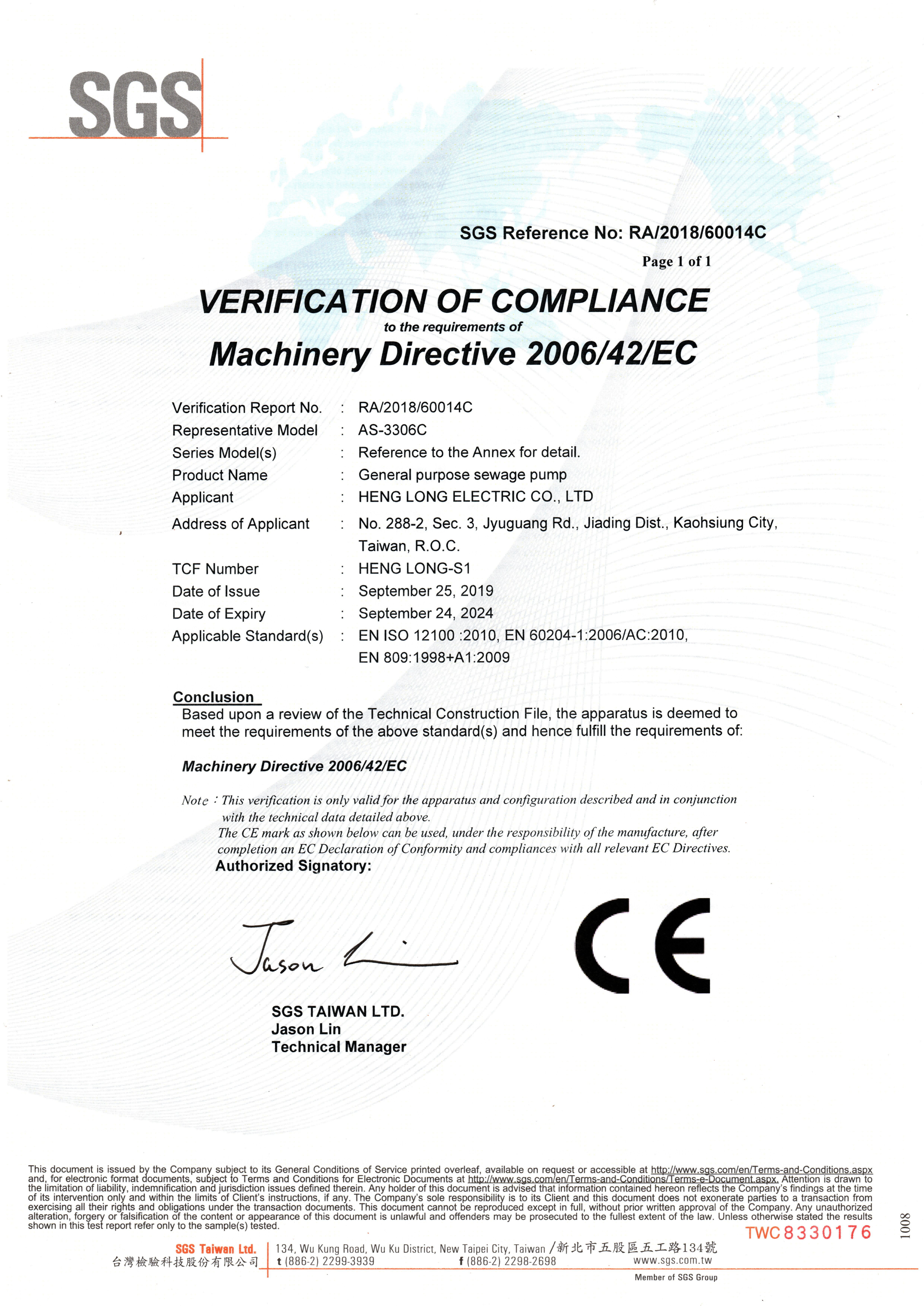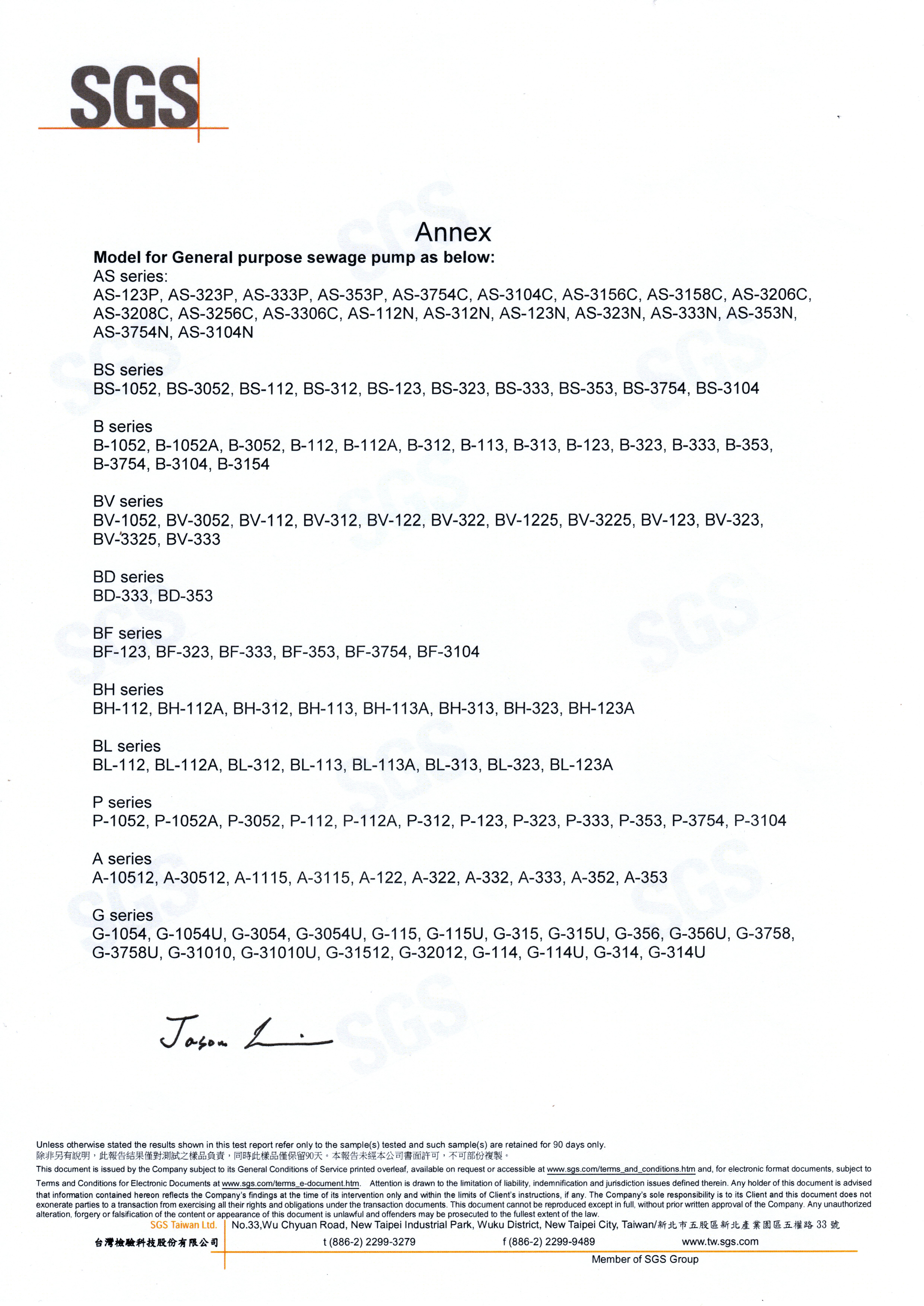 BSF系列 高效能設備用污物廢水型泵浦(2P)